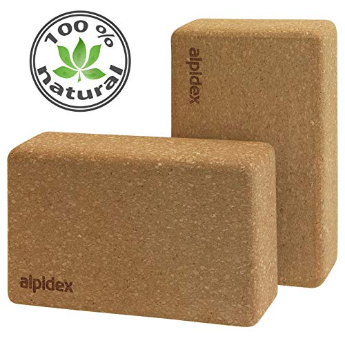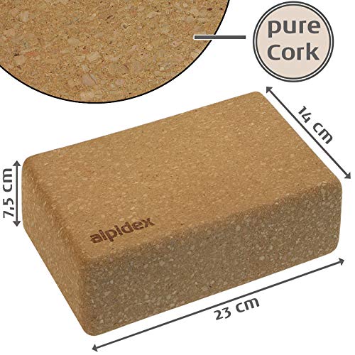 ALPIDEX Yogablok, 1 of 2-delige set, ecologisch en duurzaam, natuurkurk, uit Portugal, kurkblok, yoga, pilates, fitness