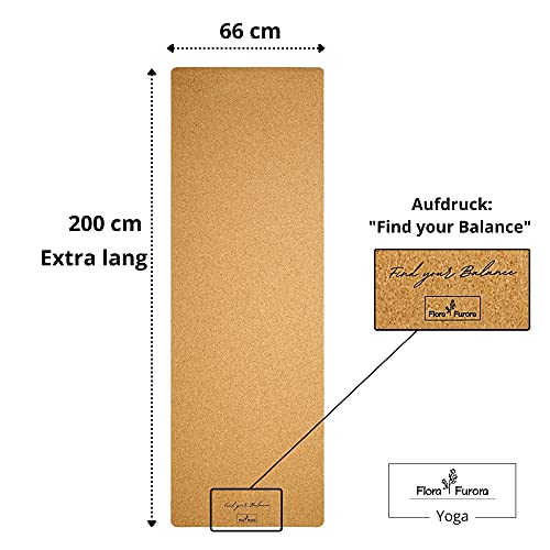 Antislip kurk, yogamat, 200 cm lang, vrij van schadelijke stoffen, duurzaam, milieuvriendelijk, natuurlijk made in Portugal, XXL, 2 meter lang, pilates, yoga, ecologische kurk, sportmat, trainingsmat, ecologische mat