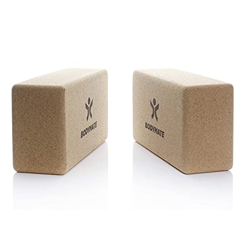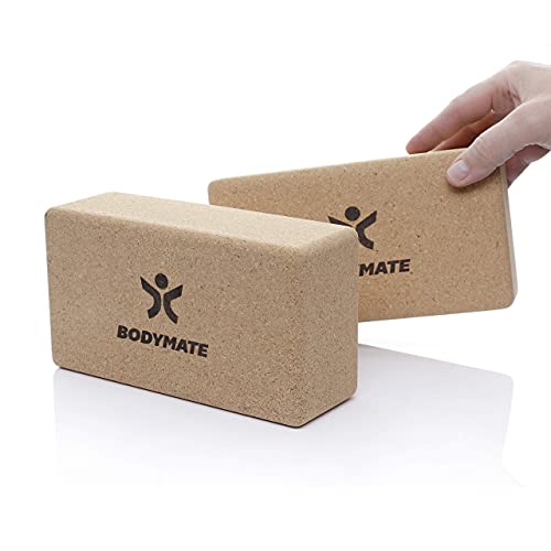 BODYMATE Yogablokken van kurk, set van 2 yogablokken, van 100% ecologische natuurkurk, ondersteuning voor alle asana’s, meditaties en ontspanningsoefeningen, voor beginners en professionals, 22 x 12 x 7,5 cm