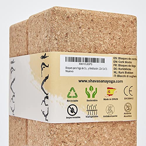 Specification: Yoga-Blöcke aus Kork, 100 % ökologisch und natürlich, 2 Stück, ideal für die Unterstützung und Unterstützung aller Asanas und Übungs- und Meditationsübungen, 22 x 12 x 7,5 cm