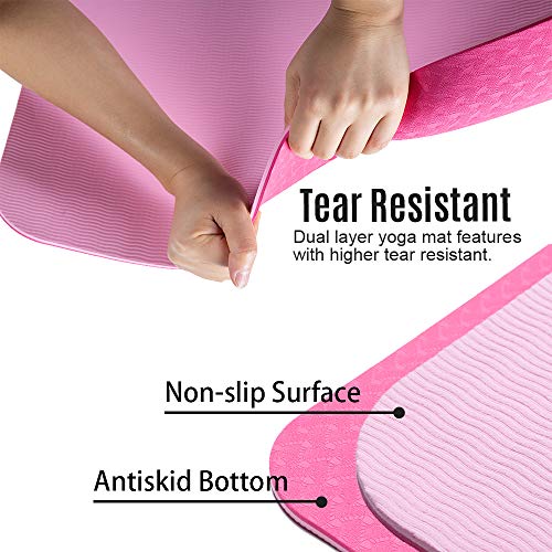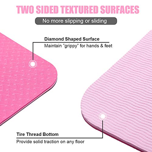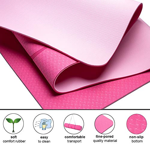 Lixada Gymnastikmatte Yogamatte rutschfest SGS-Zertifiziertes TPE Material Strukturierte rutschfeste Oberfläche und Optimale Dämpfung mit Tragegurt((72″x24″)