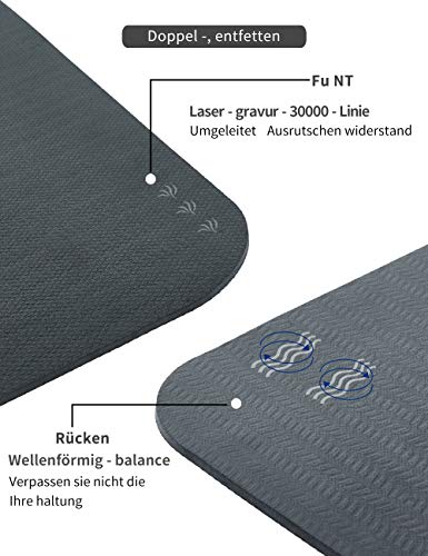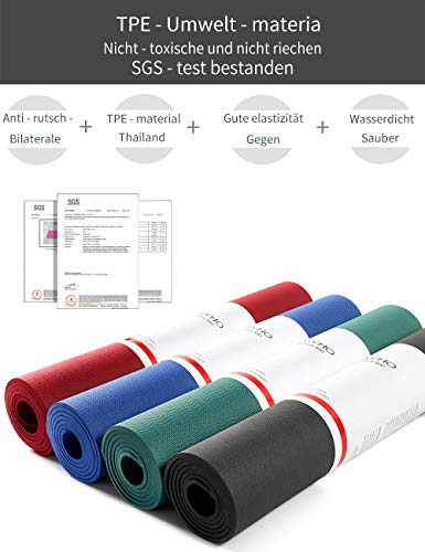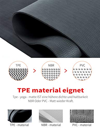 Specification: Yawho yogamatten, fitnessmatten, 183 cm x 66 cm, 0,6 cm hoog, antislip en hoogwaardig TPE, milieuvriendelijk materiaal, SGS-gecertificeerd, design met hulplijnen, licht, milieuvriendelijk, duurzaam