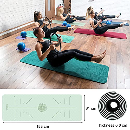 Yogamat, TPE gymnastiekmat, antislip, fitnessmat voor workout, milieuvriendelijke oefenmat, sportmat voor yoga, pilates, hometraining, 183 x 61 x 0,6 cm