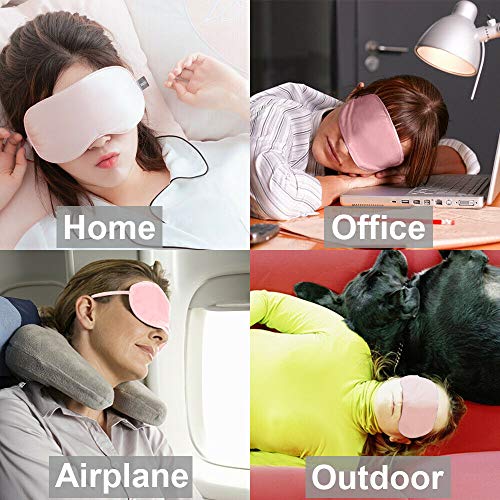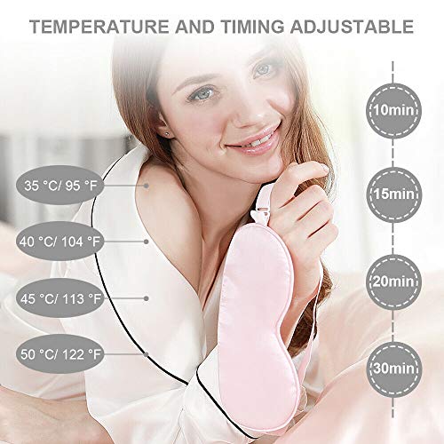 Guoyajf Draagbaar USB-verwarmd oogmasker, slaapmasker, 4 temperatuur- en tijdcontrole, oogmasker voor gezwollen ogen, droge, vermoeide ogen, donkere kringen, roze